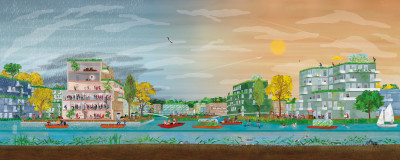 Atelier Dordrecht onderzocht hoe het gebied De Staart een belangrijke rol kan spelen bij het realiseren van de Dordtse waterveiligheidsagenda. De vijf deelonderzoeken van ontwerpbureaus VenhoevenCS, PosadMaxwan, EGM architecten, Studio Donna van Milligen Bielke en West 8 laten zien dat een duurzame en inclusieve stadsontwikkeling kansen biedt voor het nu nog geïsoleerde gebied.