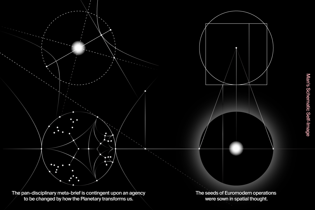 In het project Figuring Planetary Space wordt de cruciale rol van ruimtelijk denken in de vorming van historische wereldbeelden onderzocht. Ook wordt nagegaan hoe ruimtelijke conventies die al eeuwen bestaan, worden ontregeld door pogingen om planetair te denken, dat wil zeggen op de schaal van de aarde als geheel. Daarbij gaat het met name om conventies die bepalen hoe zaken als ‘lokaliteit’ en ‘locatie’ worden gerepresenteerd. In dit historische en theoretische onderzoek wordt de oorsprong van de euromoderniteit herleid tot het architectonisch denken op basis van Vitruviaanse proporties, opgevat als de symbolische index die ten grondslag ligt aan een Grieks-Romeins mensbeeld dat zichzelf als referentiepunt heeft. Dit mondt uit in de gelijktijdige articulatie van de renaissancistische perspectivische ruimte en het filosofisch humanisme. In dit onderzoek, gekaderd als een interdisciplinaire meta-opgave, worden de gevolgen van deze naar de mens zelf verwijzende articulatie van ruimte (zoals die tot uiting komt in het projectieve lineaire perspectief) in kaart gebracht in relatie tot het ontluikende mensbeeld dat zich ontwikkelt ten tijde van de Europese kolonisatie van de Amerikaanse continenten. Door filosoof Sylvia Wynter’s beschrijving van ‘de’ mens als de architect van onze huidige geopolitieke situatie toe te passen op de mediatie van dit zelfbeeld, wordt zichtbaar hoe articulaties en voorstellingen van ruimte kunnen gaan fungeren als cognitieve technologieën die bepalen hoe we ons tot de wereld verhouden en hoe we deze waarnemen.
