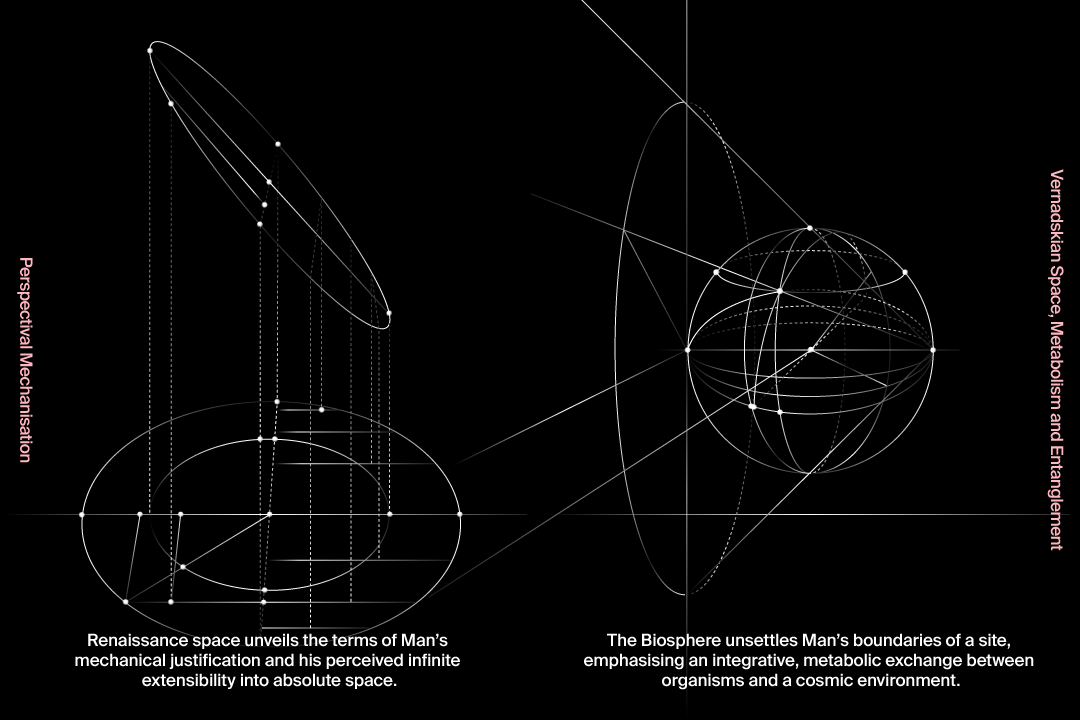 De ontdekking van de biosfeer (1926) wordt – in ruimtelijke termen – omschreven als een verstoring van de euromoderne ruimte, die een paradigmaverschuiving van mechanisch naar ecologisch denken oproept, waarbij de referentiekaders van de mens een belemmering vormen. In het onderzoek worden de belangen beschreven waarmee de hedendaagse planetaire praktijk te maken heeft en die ons dwingen om vertrouwde ruimtelijke normen – die zijn afgestemd op de menselijke maat – op te schorten. Dit kan worden toegepast in verschillende ruimtelijke pedagogische benaderingen die zich buigen over dringende vragen rond leefbaarheid, die het discours over duurzaamheid overstijgen.